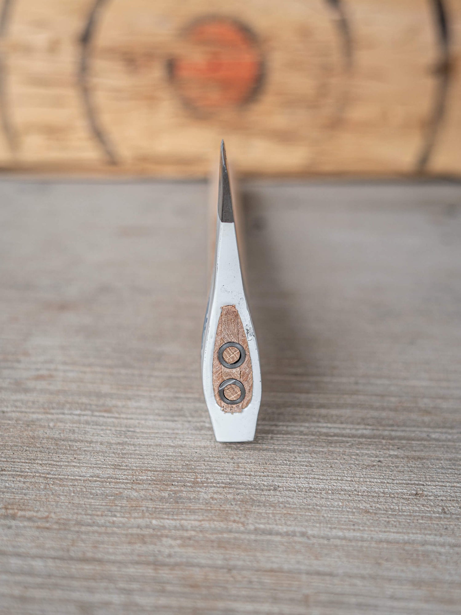 Crafted with meticulous attention to detail, this throwing axe features a high-quality straight 26” American Hickory wood handle that not only offers an easy release for increased accuracy, but also enhances its durability while allowing room for customization if you prefer a shorter handle. The carbon steel head is built to withstand rigorous use, ensuring long-lasting performance and countless memorable throws.