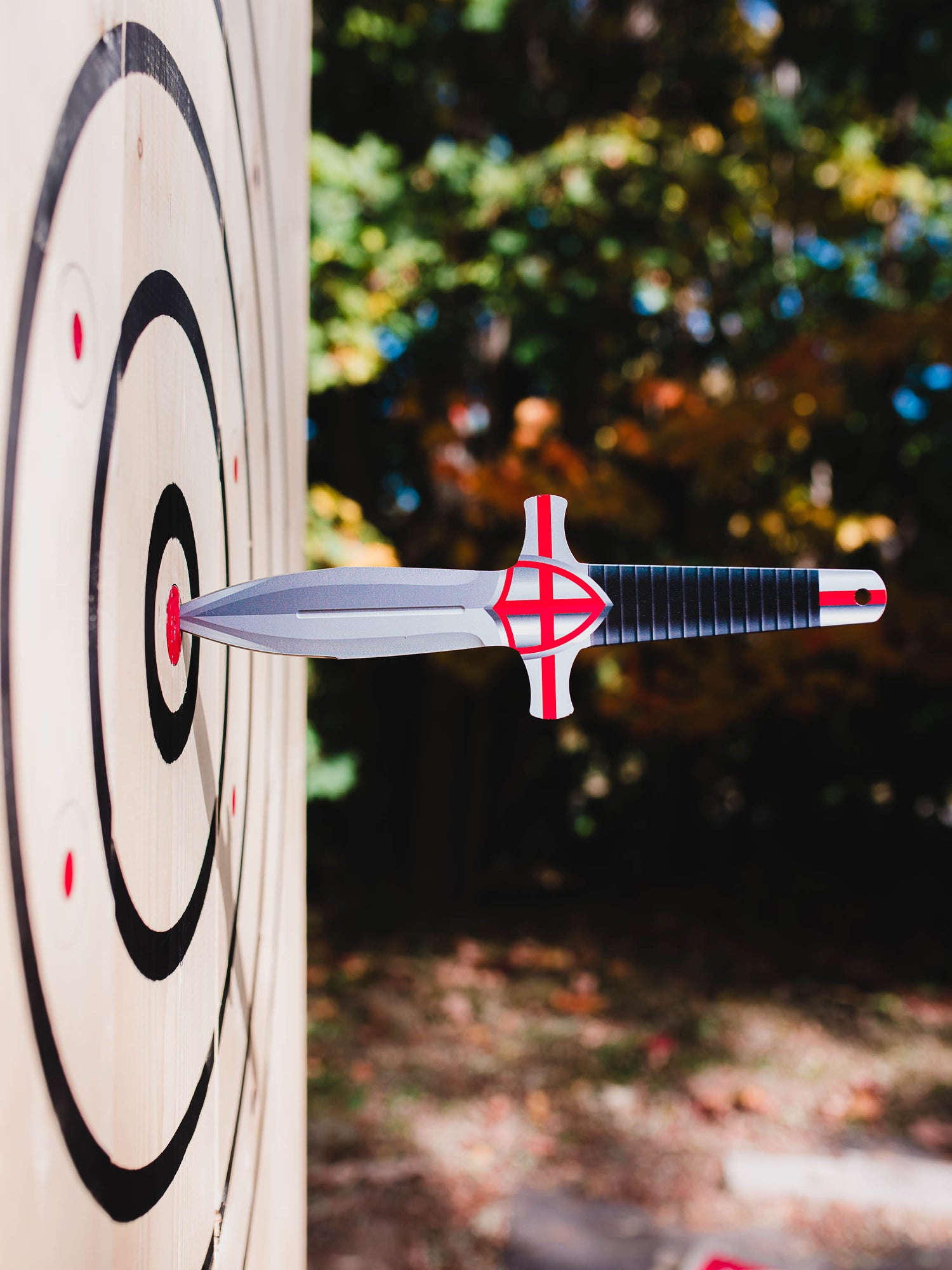 The Crusader is back and better than ever with our new Valor's Edge Design. Featuring a black handle and shield with red accents.